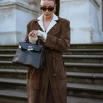 Elevate your seasonal wardrobe with this timeless long trench coat, designed for elegance and everyday sophistication. The structured silhouette, double-breasted front, and adjustable waist belt create a flattering fit that transitions seamlessly from day to night. The mid-weight construction makes it ideal for layering during cool British weather, while the soft inner feel ensures comfort throughout wear. Perfectly balancing modern refinement with classic tailoring, this trench coat brings an effortlessly polished finish to any outfit.