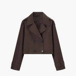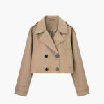 Cropped Double-Breasted Trench Coat with Contrast Buttons