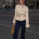 Cropped Double-Breasted Trench Jacket with Belted Cuffs