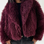 Cropped Shaggy Faux Fur Jacket with Wide Lapel