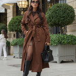 Make a timeless statement with this long faux suede trench coat — a sophisticated layering piece that adds structure, softness, and style to your wardrobe.