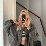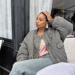 Elevate your outerwear game with our oversized quilted bomber jacket, expertly combining practical comfort with modern streetwear style. This jacket boasts a relaxed silhouette and a textured quilted pattern, ensuring both function and fashion.