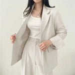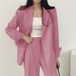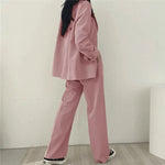 Elevate your wardrobe with this elegant tailored blazer and trouser set — a timeless ensemble that blends sophistication with comfort. Featuring a structured blazer and flattering high-waisted trousers, this set delivers a sleek silhouette perfect for both professional and social settings. The clean lapel design and relaxed fit bring effortless style, making it ideal for meetings, formal events, or a polished everyday look. Whether worn together for a coordinated outfit or styled separately, this set adds instant confidence and refinement to your wardrobe.