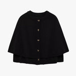 Add refined charm to your everyday wardrobe with the Button-Front Short Cape Cardigan — where sophistication meets modern comfort.