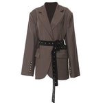 Custom-Fit Blazer Jacket with Belt and Lapel Collar