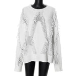 Make a bold statement with the Distressed Textured Knit Oversized Jumper — where edgy design meets everyday comfort. This fashion-forward piece features a relaxed silhouette with distinctive distressed detailing throughout, creating a striking deconstructed effect that’s both modern and effortlessly cool. Crafted for those who love a touch of individuality, its soft knit and loose fit make it ideal for layering over camisoles, shirts, or bralettes. Perfect for casual outings or urban streetwear styling, this jumper combines comfort and confidence in one standout look.