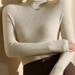 A timeless wardrobe essential designed for refined comfort and effortless sophistication. This high neck slim fit knit top features a seamless, body-contouring design that delivers a sleek silhouette while keeping you comfortably warm. With its soft ribbed texture and gentle stretch, it offers an elegant balance of style and practicality, perfect for layering under jackets or wearing solo for a minimalist look. Ideal for both casual and professional settings, this piece effortlessly elevates any outfit with its clean, polished aesthetic.